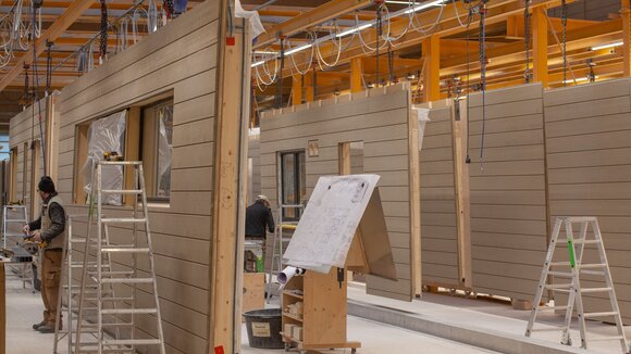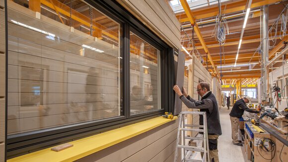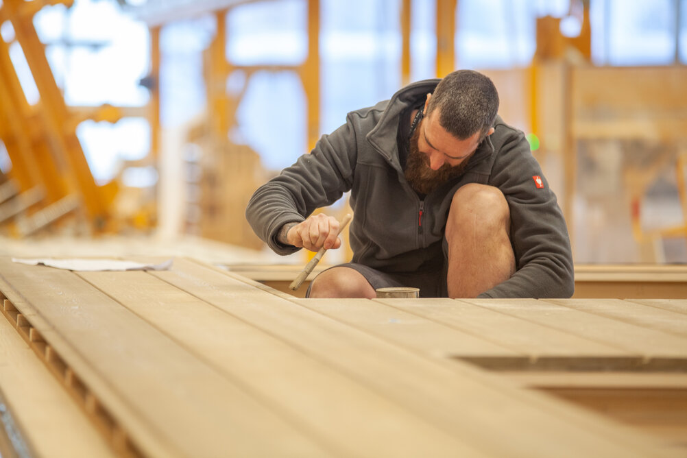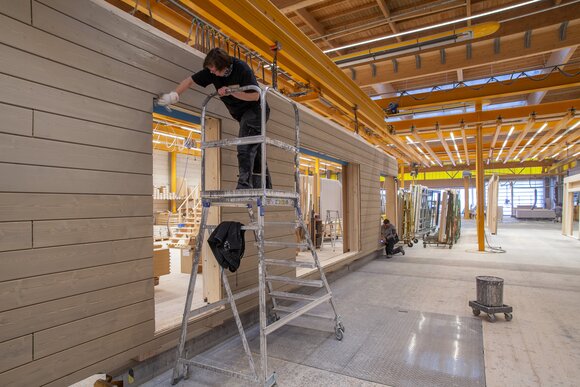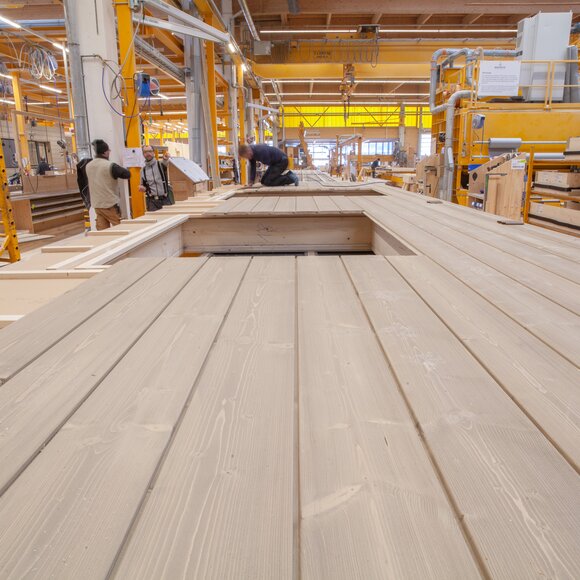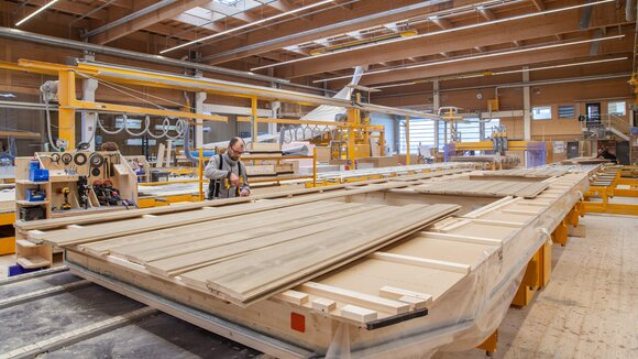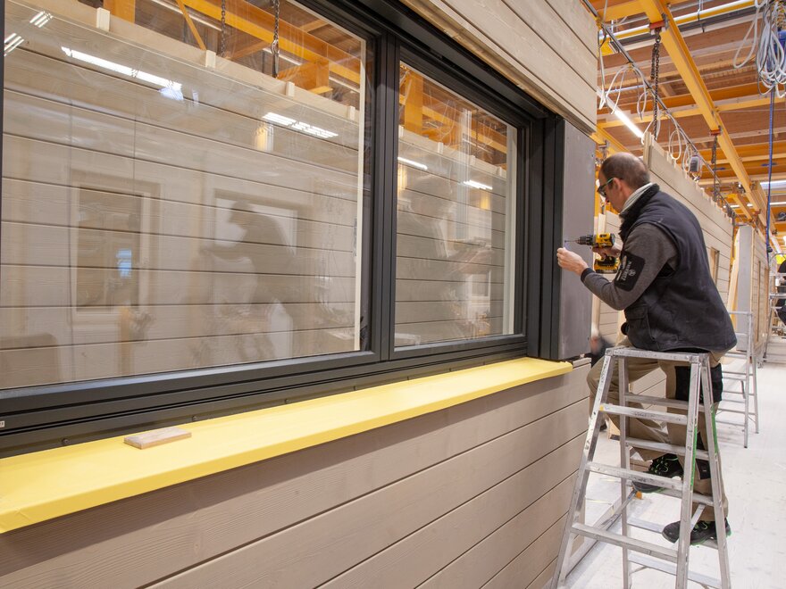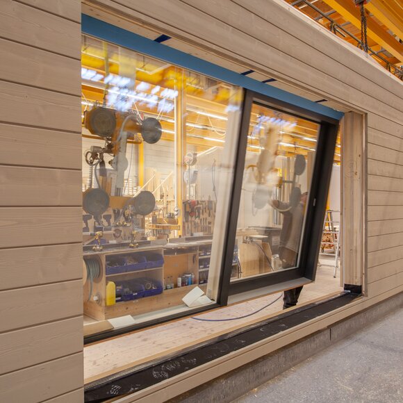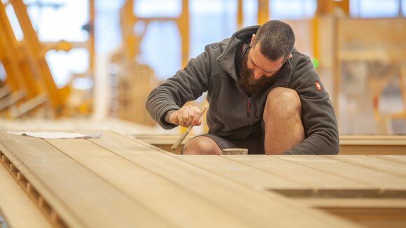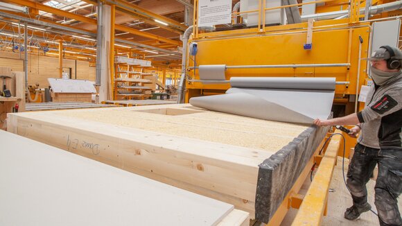 We insulate our walls using our own ecological insulation material. Made with wood shavings, “HOIZ” is the world’s first sustainable ecological insulation. It has been certified with the Cradle-to-Cradle Gold standard and awarded the IBN quality seal. This innovative and healthy insulation material is the resource-saving alternative to solid timber and is made with wood sourced from local forests. Thanks to our unique, natural whey-and-soda impregnation, it meets the highest standards in terms of fire, flame, fungal and pest protection.