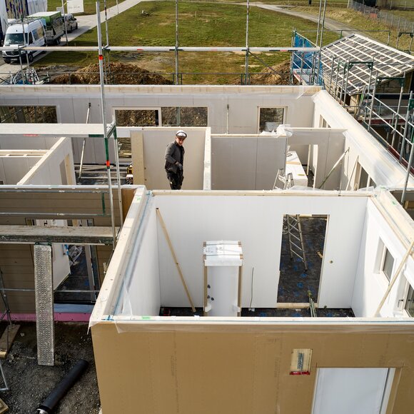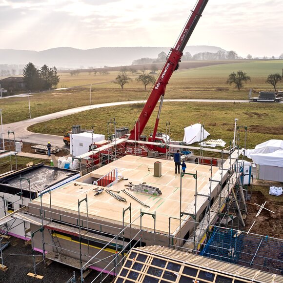 We invite you to visit our headquarters in Erkheim, in the lovely Allgäu region of Southern Germany. Experience the unique architecture, quality and healthy interiors of our buildings. Be inspired in our HausSchneiderei design centre and take a look behind the scenes of state-of-the-art Baufritz production. The nearest airport is Memmingen, just a 10-minute drive away. Or why not combine it with a trip to Munich. Our sales advisers would be happy to organise an individual tour for you.