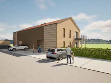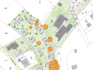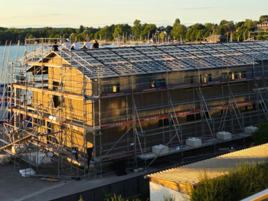 In der Entstehung ist ein dreistöckiges Bürogebäude mit Penthouse-Wohnungen nach KfW40-Standard.
