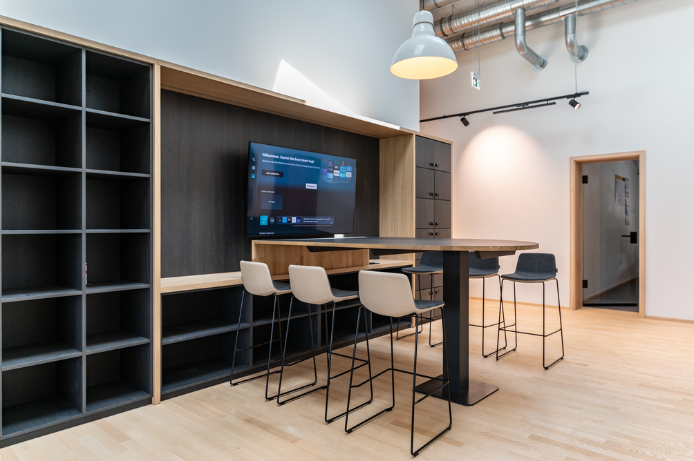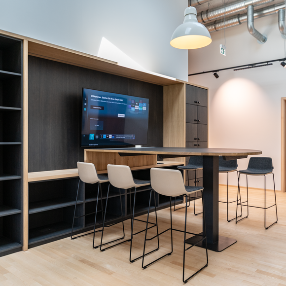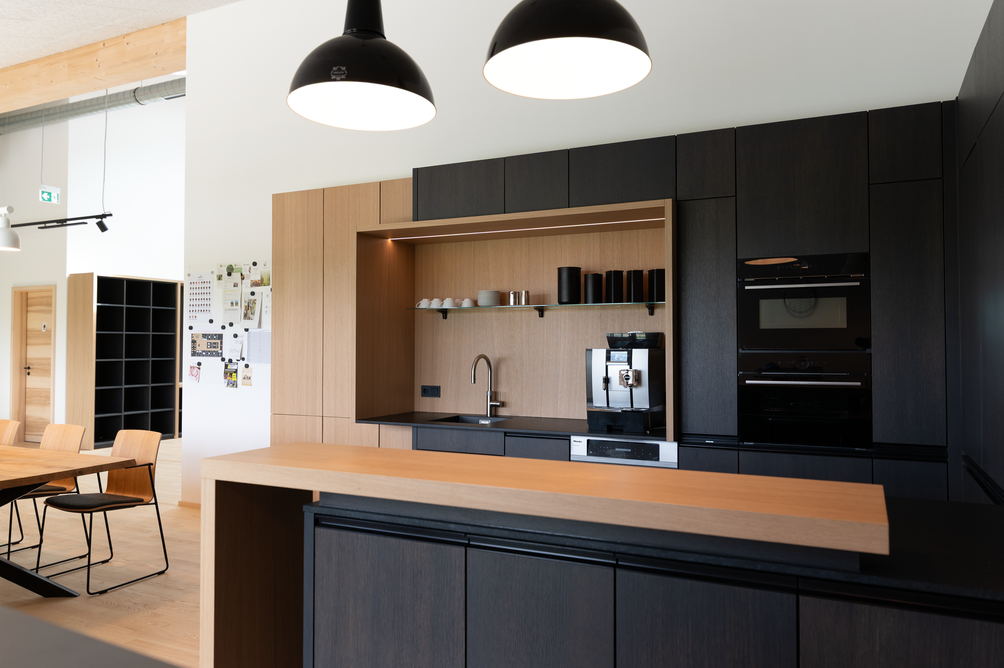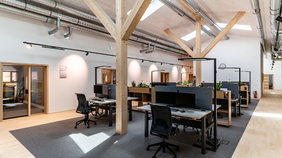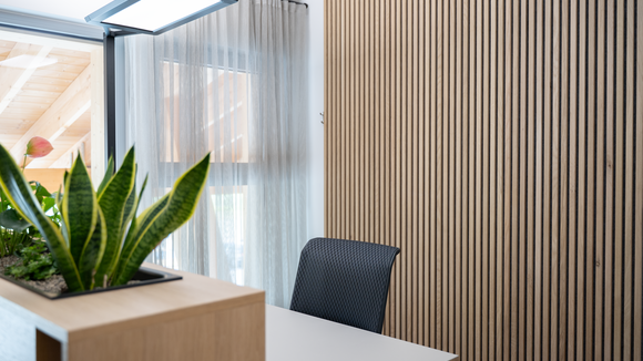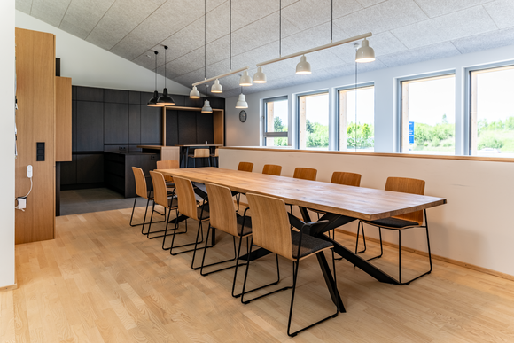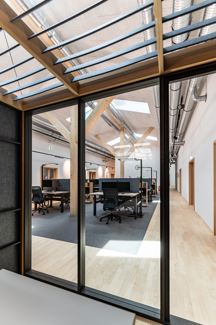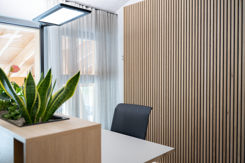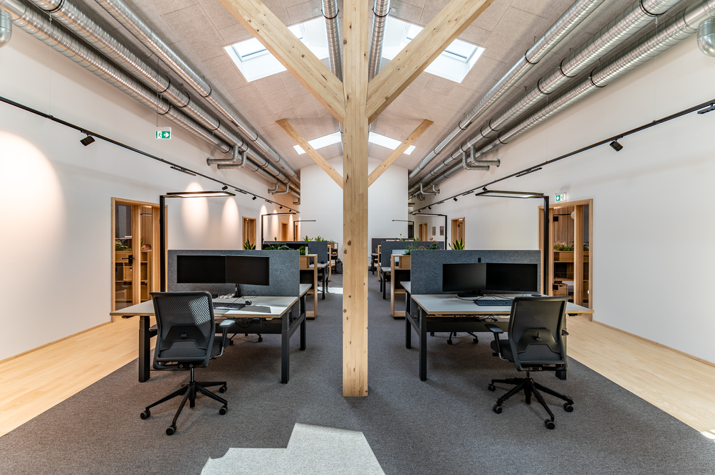 90 x 20 Meter umfasst der zweigeschossige Objektbau auf dem Gelände von Baufritz am Unternehmenssitz in Erkheim. Hier sind das Kommissionslager unserer Manufaktur sowie Büros und Besprechungsräume untergebracht. Eingezogen sind unsere Montageleitung, Arbeitsvorbereitung, Projektleiter und Service. Bis auf das Fundament besteht das Gebäude zu nahezu 100 % aus Holz. Im Kommissionslager bereiten wir die Materialien für unsere Monteure vor, die sie beim Bau unserer Häuser benötigen. Verkürzte Kommissionierzeiten, optimierte Prozesse und eine fehlerfreie Auftragszusammenstellung, das war das Ziel. Durch die Größe der Halle haben wir ausreichend Raum und genügend Kapazität, alle Materialien passend zur Größe und dem Umfang unserer Bauvorhaben einzulagern. Dank der optimalen Anordnung der präzise vorgefertigten Waren haben wir eine effiziente Raumnutzung erreicht. Die Waren sind für unser Team in Regalsystemen eingelagert, mit kurzen Laufwegen für ein schnelles und einfaches Picking. Speziell ausgewählte Tore, Fußbodenheizung und unsere wirkungsvoll ökologisch isolierten Außenwände mit dem Baufritz-Wandaufbau ermöglichen unseren Lagerbeschäftigten auch im Winter einen nachhaltigen und vorbildlichen Betrieb. Und: Wir haben auch für unsere Belegschaft an den Schreibtischen helle Räume mit spürbarer Aufenthaltsqualität für angenehmes Arbeiten geschaffen.