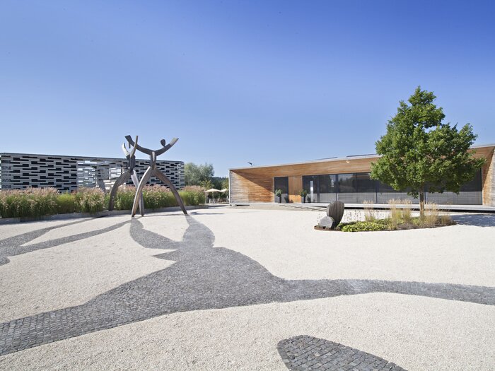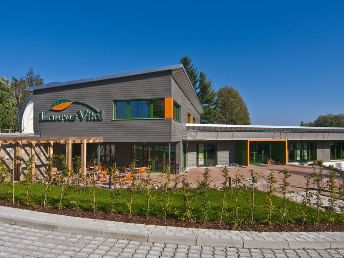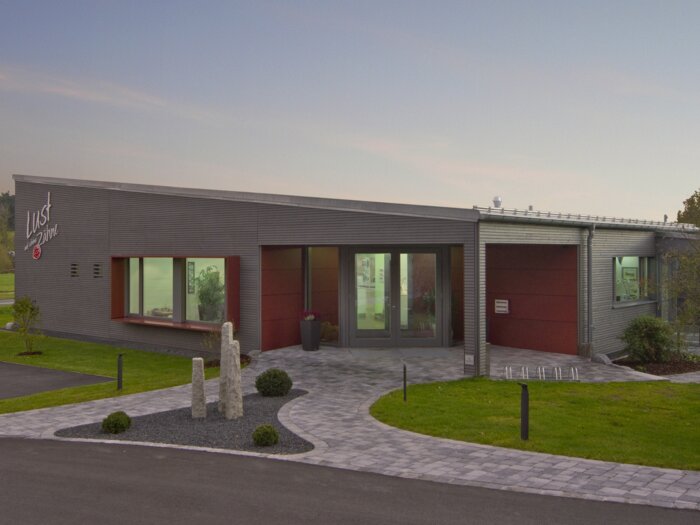 Die HausSchneiderei ist das Bemusterungszentrum von Baufritz. Der moderne Bau auf dem Unternehmensgelände in Erkheim ist eine architektonisch anspruchsvolle Synthese aus Showroom, Planungsplattform und Raum für die Entscheidungsfindung der Baufritz-Kunden. Planer, Architekten und Unternehmen sehen hier viel mehr: