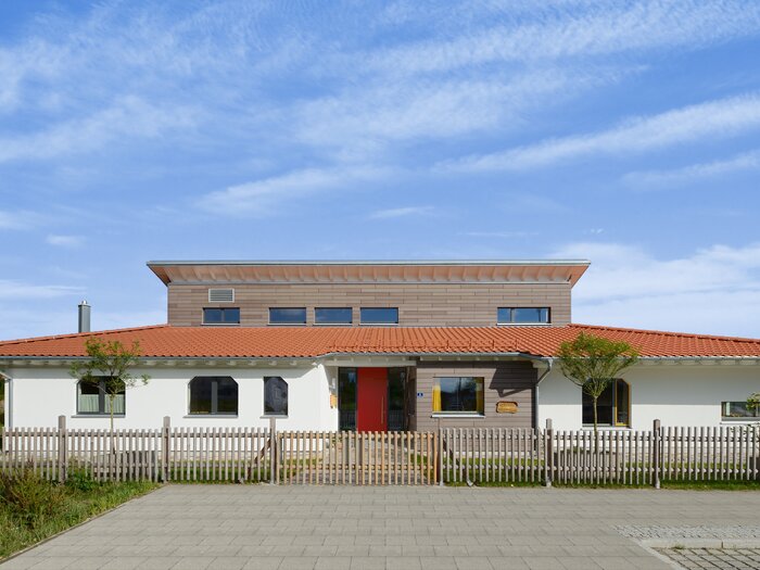 Der Verein zur Förderung der Waldorfpädagogik in Mühldorf wünschte sich eine Umgebung, in der Kinder gesund und in einer schadstofffreien Umgebung aufwachsen können. Kleine Kinder sind besonders empfindlich gegenüber Schadstoffen. Deshalb ist ein gesundes Raumklima elementar. Die Wahl des Baupartners fiel auf Baufritz. Heute spielen 56 Kinder zwischen 2,5 und 7 Jahren in den natürlich geprägten Räumen, die den architektonischen Anforderungen der Waldorf-Lehre entsprechen und Sinneserfahrungen schulen.