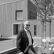 Jedes Mal, wenn Architekt Edwin Heinz früher aus dem Fenster blickte, konnte er ihn sehen: den alten Marienhof. Und im Laufe der Jahre konnte er auch sehen, dass der ehemalige Bauernhof immer mehr verfiel. Aus dem Gelände – stadtnah und dennoch in großzügiger Entfernung zur nächsten Bebauung – ließe sich doch etwas machen, dachte er sich. Mit neuem Leben auf dem alten Hof. So wurde zum Beispiel das Erdgeschoss des ehemaligen Stalls erhalten. Aber auch Anordnung, Formen und Materialien der neuen Wohngebäude nehmen heute Bezug auf die Geschichte des Gehöfts und bilden eine gestalterische Einheit: Heute besteht das neue Wohnquartier, das Edwin Heinz in einer Gruppe mit fünf weiteren Bauherren entwickelt hat, aus sechs Einfamilienhäusern, mit ihrem Kubus angelehnt an die früheren Wirtschaftsgebäude, und einen Haus mit zwei Wohnungen. Drei Häuser auf der Nordseite und der gegenüberliegende ehemalige Stall sind in Ost-West-Richtung angeordnet. Die drei Einfamilienhäuser auf der südlichen Grundstückshälfte sind in ihrer Ausrichtung um 90 Grad gedreht. So machen sie sich schmal, um den Nachbarn im Norden möglichst viel Sonnenlicht und Aussicht zu gönnen.