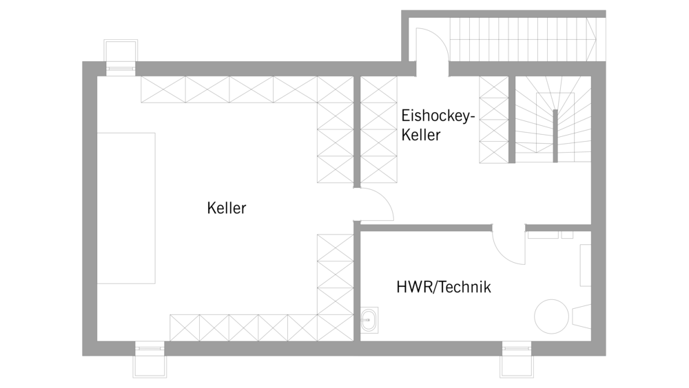 Die Lage unmittelbar am Waldrand spiegelt die Liebe zur Natur wieder. Sie wird aufgegriffen in den traditionellen Details wie der naturbelassenen Holzfassade, dem heimeligen Dachüberstand mit sichtbarer Untersicht in Holz sowie den sichtbaren Sparren und Pfetten, die sich so gelungen mit der modernen vertikalen Fassadengestaltung in Kombination mit Anthrazit und den überraschenden Fensterformen vereinen. Überall im Erdgeschoss gibt es praktische Fenstertüren, damit die Familie schnell ins Freie gelangt.