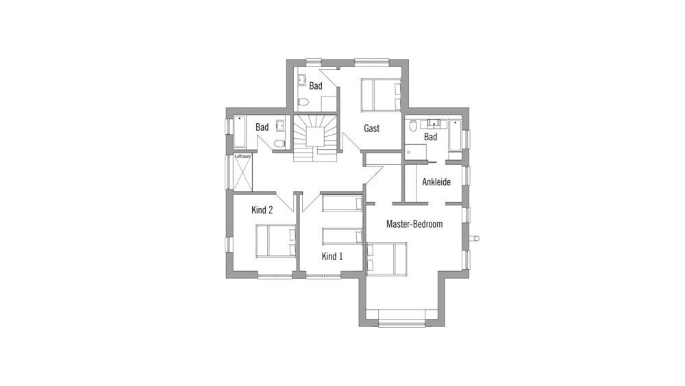 * Die Quadratmeter-Angaben beziehen sich auf die Nettogeschossfläche und sind nicht gleichzusetzen mit der Wohnfläche nach DIN. Bei Häusern mit Kniestock (z. B. Doppelhaus) kann die angegebene Zahl dementsprechende Abweichungen zwischen der angegebenen Bodenfläche und Wohnfläche aufweisen.