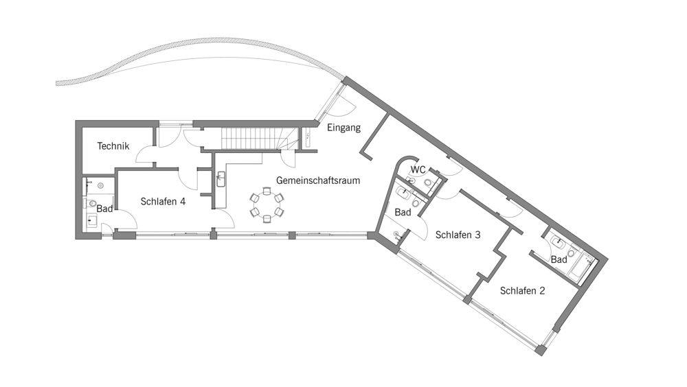 Das Haus richtet sich nach Süden aus und nahezu jedes Zimmer hat einen eigenen Zugang zur großzügigen Terrasse oder dem überdachten Balkon mit herrlicher Aussicht.