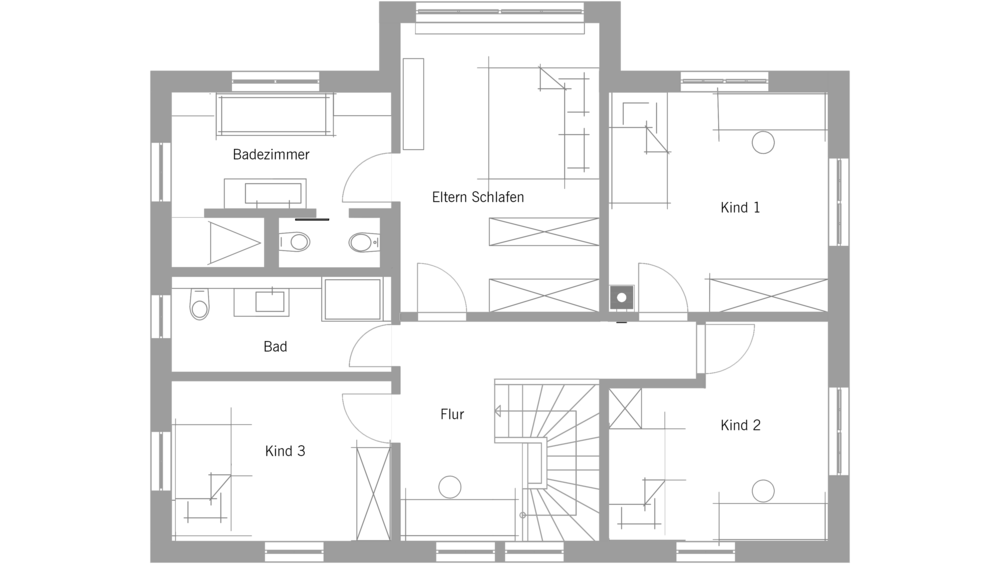 * Die Quadratmeter-Angaben beziehen sich auf die Nettogeschossfläche und sind nicht gleichzusetzen mit der Wohnfläche nach DIN. Bei Häusern mit Kniestock (z. B. Doppelhaus) kann die angegebene Zahl dementsprechende Abweichungen zwischen der angegebenen Bodenfläche und Wohnfläche aufweisen.