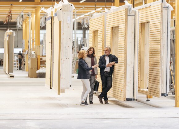 Wie es sich anfühlen wird, Ihr ganz eigenes Traumhaus? Wir wollen ehrlich sein: Wir versprechen Ihnen keinen Traum. Viel lieber ist uns Transparenz, das wahre Leben, Ihr persönliches Empfinden, Ihr eigener Eindruck. Deshalb laden wir Sie zu uns ein – in unsere Hausausstellung am Stammsitz Erkheim im Allgäu oder in eins der vielen Musterhäuser überall. Dort können Sie teilweise sogar über Nacht bleiben. Und bitte kommen Sie auch mit in unsere Produktion. Hier wird an den echten Traumhäusern gearbeitet. Hier beginnt gesundes und ökologisches Bauen. Hier erleben Sie redliches Handwerk, erstklassige Qualität, modernste Fertigungsmethoden, den planvollen Umgang mit den ausschließlich wohngesunden Materialien. Sie werden überall vom Duft des Holzes begleitet. Sie sehen, wie wir architektonische Herausforderungen umsetzen. Und Sie können uns alles fragen. Jeden und jede von uns. Bei Baufritz ist das selbstverständlich. Gerne dürfen Sie auch Europas größten Holzkopf erklimmen. In luftiger Höhe entstehen hier großartige Ideen und wir genießen einen inspirierenden Weitblick. Noch mehr Vorfreude auf das, was kommt? Willkommen in unserer einzigartigen HausSchneiderei.