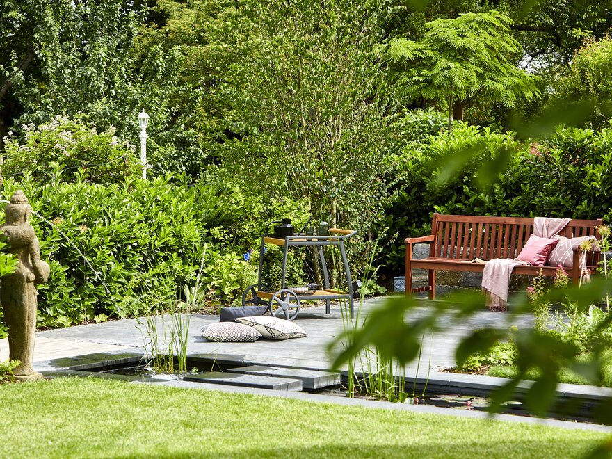 Die Verbindung zwischen Haus und Garten spielt dabei eine zentrale Rolle. Schon ihr Vater, Graf Gustaf Lennart Nicolaus Paul Bernadotte, erkannte die Bedeutung der Gartenkultur für die Lebensqualität. Seit den 1930er Jahren hat die Familie aus der einst verwilderten Insel Mainau im Bodensee ein beeindruckendes botanisches Paradies geschaffen. Bettina Gräfin Bernadotte spricht gerne von einem "Naturkino", in dem sich die Jahreszeiten in den Veränderungen von Licht, Pflanzen und Wasser widerspiegeln und so eine echte Entschleunigung ermöglichen.