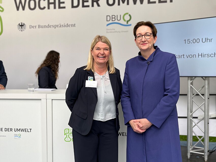 Auch als Speakerin auf der Fachbühne des Parks von Schloss Bellevue war Dagmar Fritz-Kramer eingeladen. Zum Panel „Nachhaltiges Bauen“, moderiert von Sabine Djahanschah (DBU), saß unsere Baufritz-Geschäftsführerin mit Klara Geywitz, Bundesministerin für Wohnen, Stadtentwicklung und Bauwesen, sowie Alexander Bonde, Generalsekretär der DBU und Architekt Jörg Finkbeiner auf dem Podium. Schließlich erweist sich die Baufritz-Leichtbauweise, auch verbunden mit dem Gedanken des Seriellen Bauens, als zukunftsweisend: „Denn wir wissen, dass wir viele Bauten im bewohnten Zustand sanieren müssen.“ Genutzt hat Dagmar Fritz-Kramer den Austausch mit den politischen Vertretern zudem für ein großes Anliegen, dem Grundstücksmangel, gerade in Großstädten, entgegenzuwirken: „Die Genehmigungsfreiheit von Dachaufstockungen würde zur Lösung beitragen“, adressiert sie ihre Botschaft an Klara Geywitz. Die Offenheit scheint vorhanden: „Holzbau ist eine der großen Brücken“, bestätigt die Bundesbauministerin. Und: Es wohnt sich einfach auch toll im Holzhaus.“