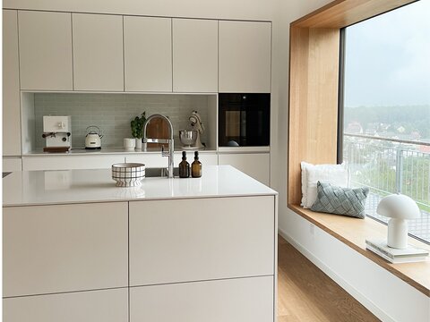 Ein besonderer Lieblingsplatz von Elena ist das Sitzfenster in der Küche. Von dort aus kann sie nicht nur lesen und den Blick in die Natur genießen, sondern Gäste ihr auch beim Kochen zuschauen.