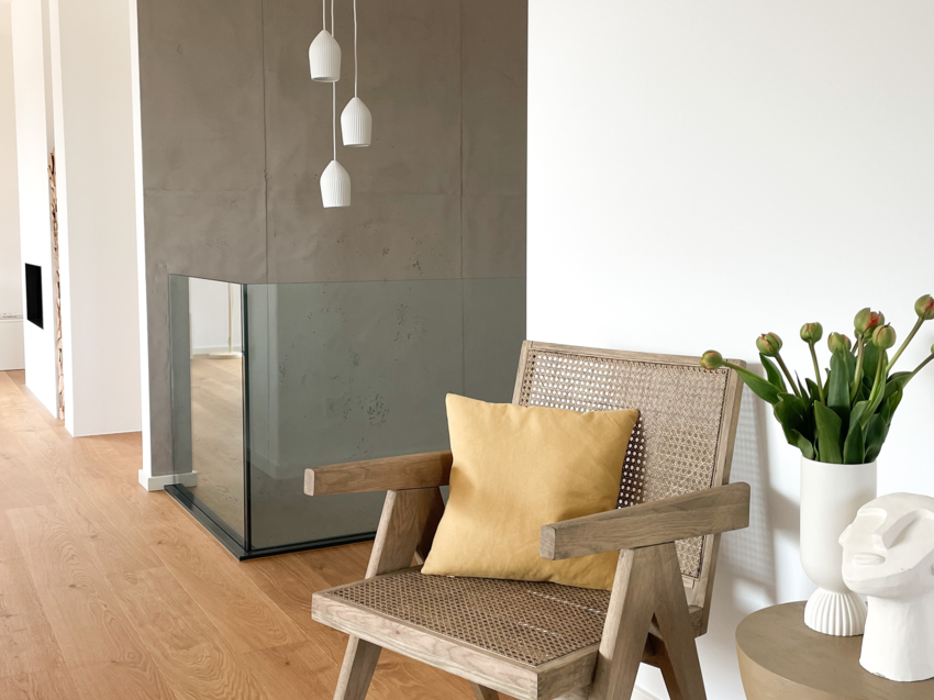 Die Entscheidung für Baufritz fiel schnell und aus gutem Grund. Für Samuel und Elena standen Nachhaltigkeit und ökologische Baumaterialien im Vordergrund. Als Fans des Bauhausstils war ihnen ein gradliniges, offenes und helles Design wichtig. Besonders das Material Holz spielte eine große Rolle und wurde umfangreich für die Inneneinrichtung genutzt.