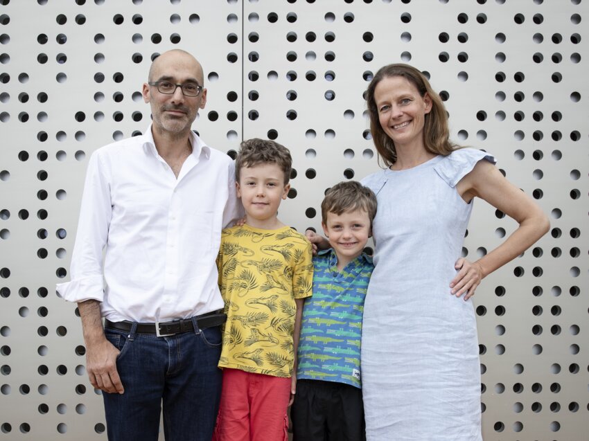 Dass wir neben Stühlen, Tellern und Weingläsern auch einmal ein von Alfredo Häberli entworfenes Haus unser Eigen nennen dürfen, hätten wir vor ein paar Jahren nicht gedacht. Es waren jedenfalls ein paar glückliche Zufälle, die Waldsicht, unser neues Familienzuhause in Köniz bei Bern, zu dem Gebäude machen, in dem wir heute wohnen. Wir steckten damals in der Entwicklung unseres Bauvorhabens fest, als uns ein Freund einen Zeitungsartikel über die Wohnstudie Haussicht, die Baufritz und Alfredo Häberli zusammen realisiert haben, schickte. Die Formensprache, die Materialisierung, und vor allem die Räume mit den integrierten Möbeldetails haben uns sehr gefallen. Mit der Frage, ob wir davon ausgehend ein eigenes Vorhaben realisieren können, starteten wir nach einigen Gesprächen und einem Besuch bei Baufritz wenig später mit ersten Planungen. Wir hatten Vorstellungen, welche Elemente umgesetzt werden sollten: Zwei Kinderzimmer, ein großzügiges Schlafzimmer, ein Arbeitsplatz mit Bibliothek und Gästenische, eine Terrasse in der Morgensonne und eine in der Abendsonne. Mit dem Zusatz, dass der Wald mit den Bäumen rund um unser Grundstück eine tragende Rolle spielen sollte.