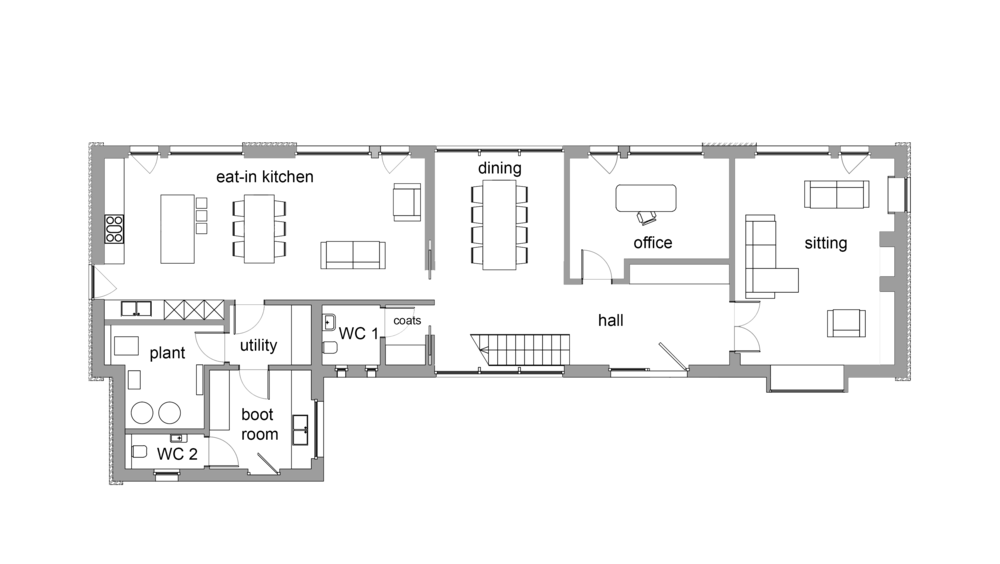 "Built in a contemporary, barn-style design with a timber and stone façade, this modern house blends with the surroundings and complies with the Local Development Plan and national guidelines. Natural slate and green roofs foster biodiversity and give the house an attractive, natural look."