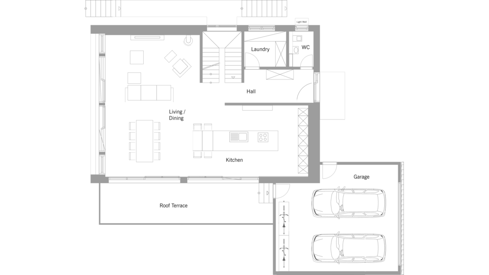 "The owners had travelled a lot and lived abroad for many years, so they knew exactly how they wanted their new house to look. They chose glass, stone and timber. In planning the house, we, as architects, worked closely with the owner family. The result is a harmonious blend of natural materials that convey a sense of space and a feeling of coming home."