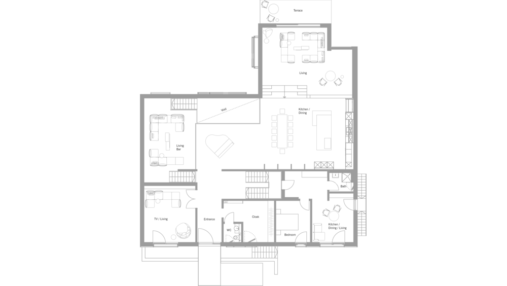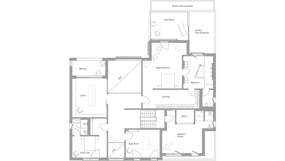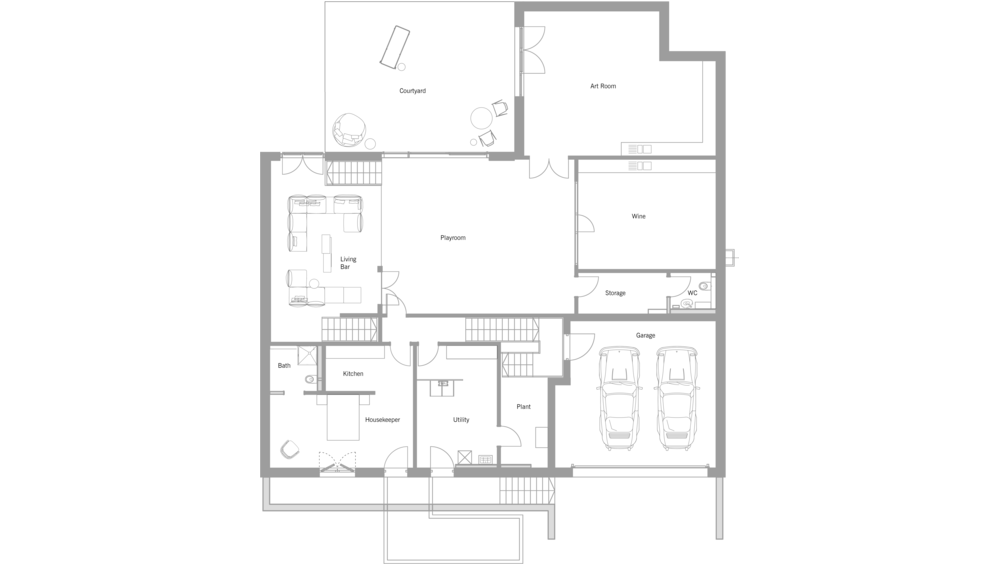 "The house is designed as a merging of two distinctly different architectural styles. Tudor Revival is referenced by means of inserting wide blackened timber planks within the typically white rendered façades as a sign of the timber structure behind. The architecture within the Neoclassicist idiom incorporates classical pilaster designs as part of the wall and columns set away from the wall. The articulated use of post-and-beam creates a filigree lattice work of lines and shadows, giving a real sense of depth to the façade."